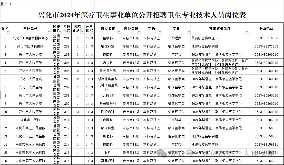 附件1:兴化市2024年医疗卫生事业单位公开招聘卫生专业技术人员岗位表.xls