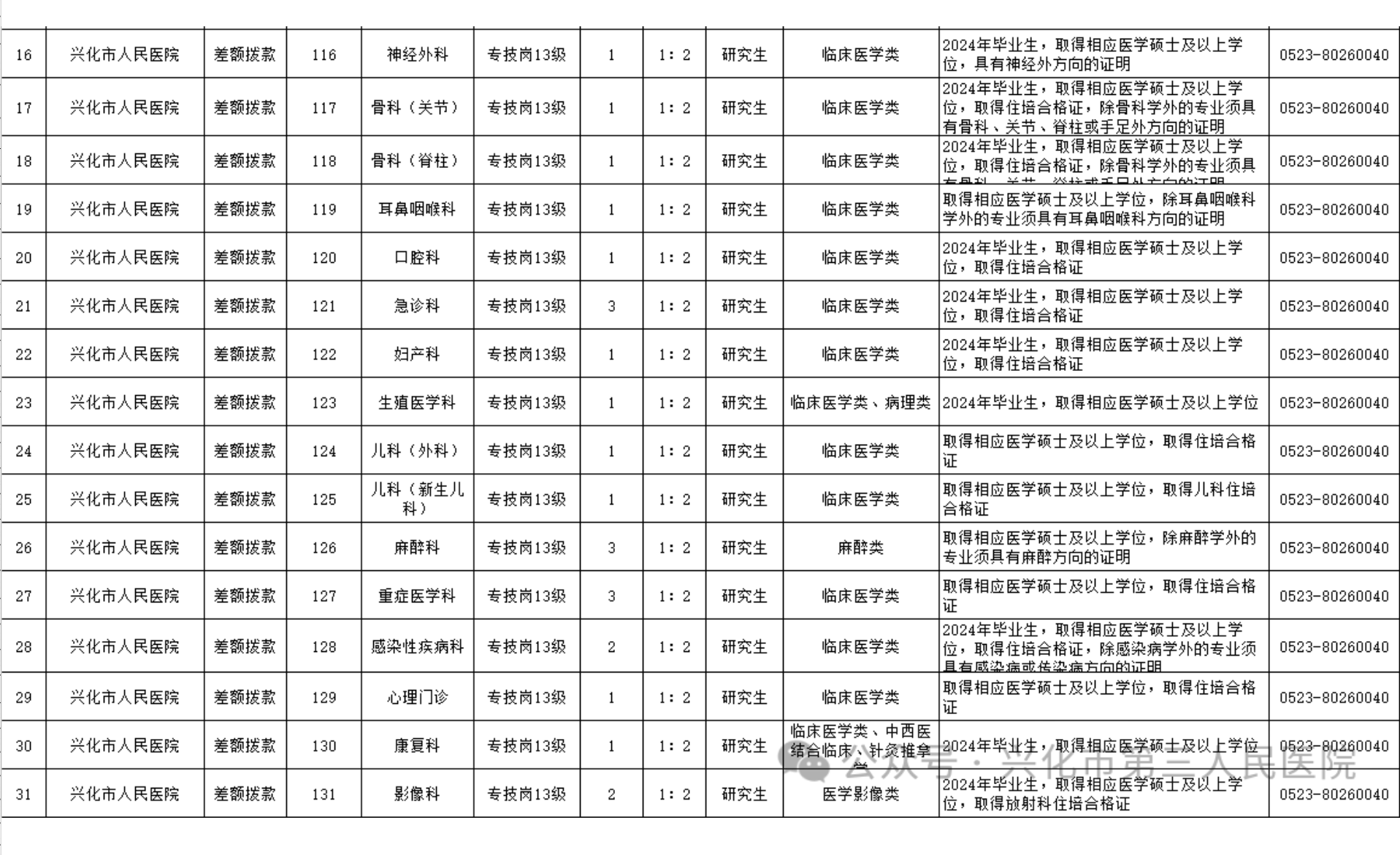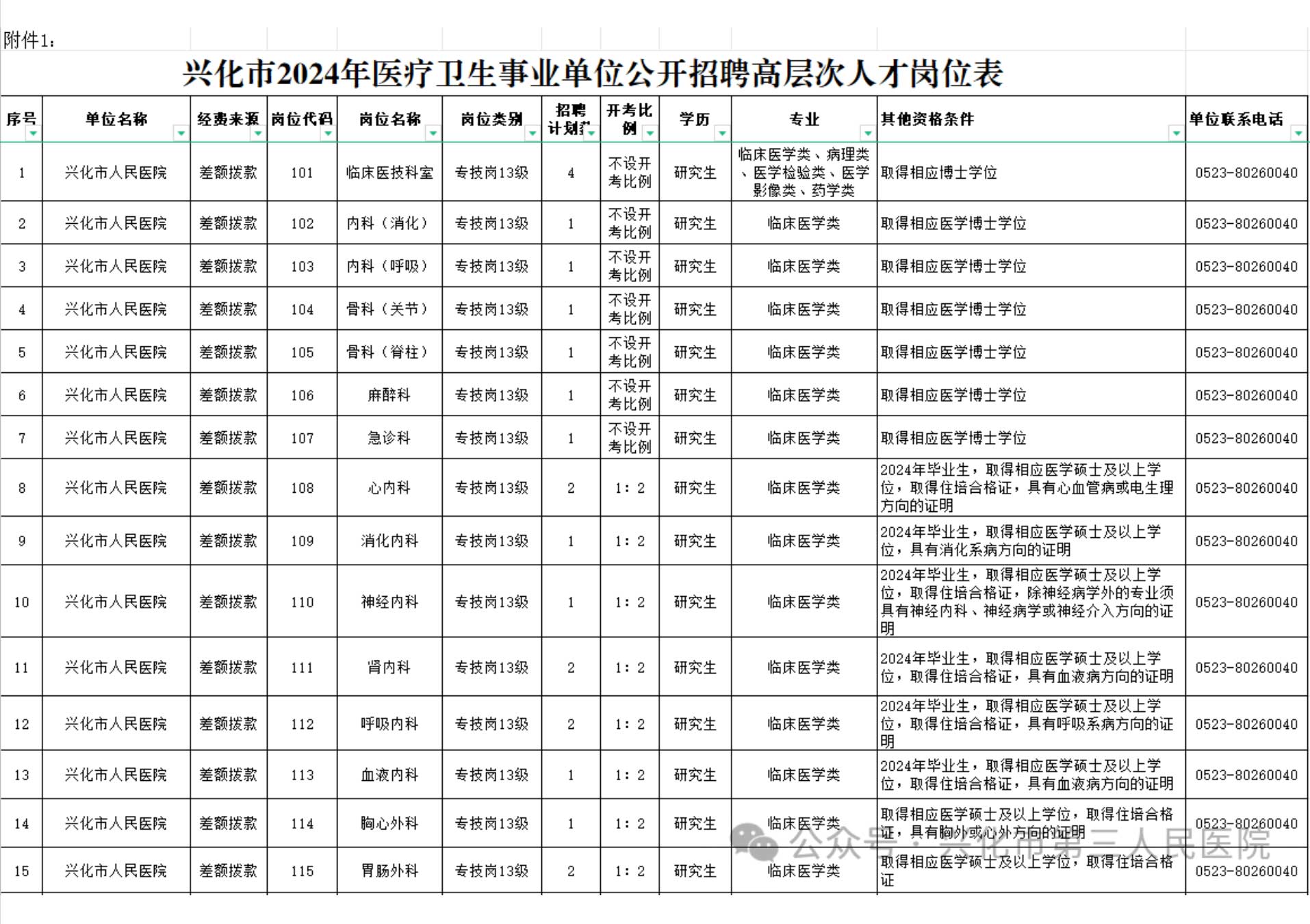 附件1:兴化市2024年医疗卫生事业单位公开招聘高层次人才岗位表.xls