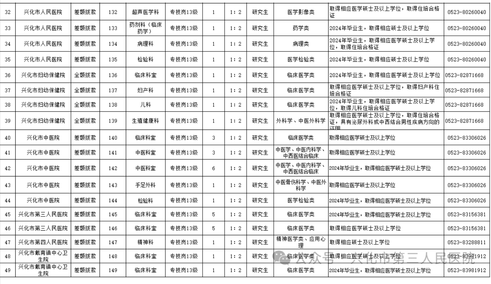 为优化人员结构、提高人员素质,根据《江苏省事业单位公开招聘人员办法》精神,兴化市部分医疗卫生事业单位决定面向社会公开招聘高层次人才,现将有关事项公告如下: