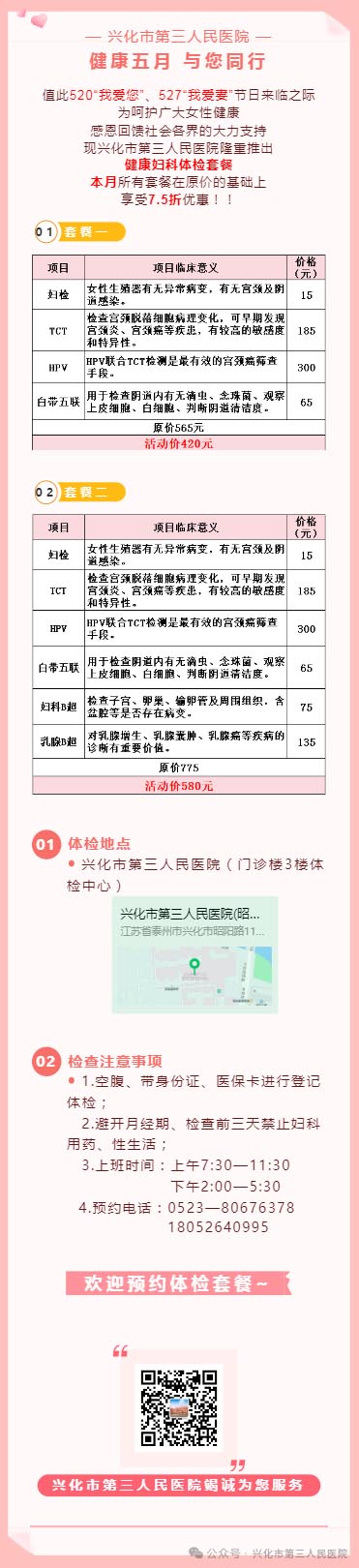 关爱女性 感恩回馈 | 兴化市第三人民医院妇科体检套餐福利来啦!