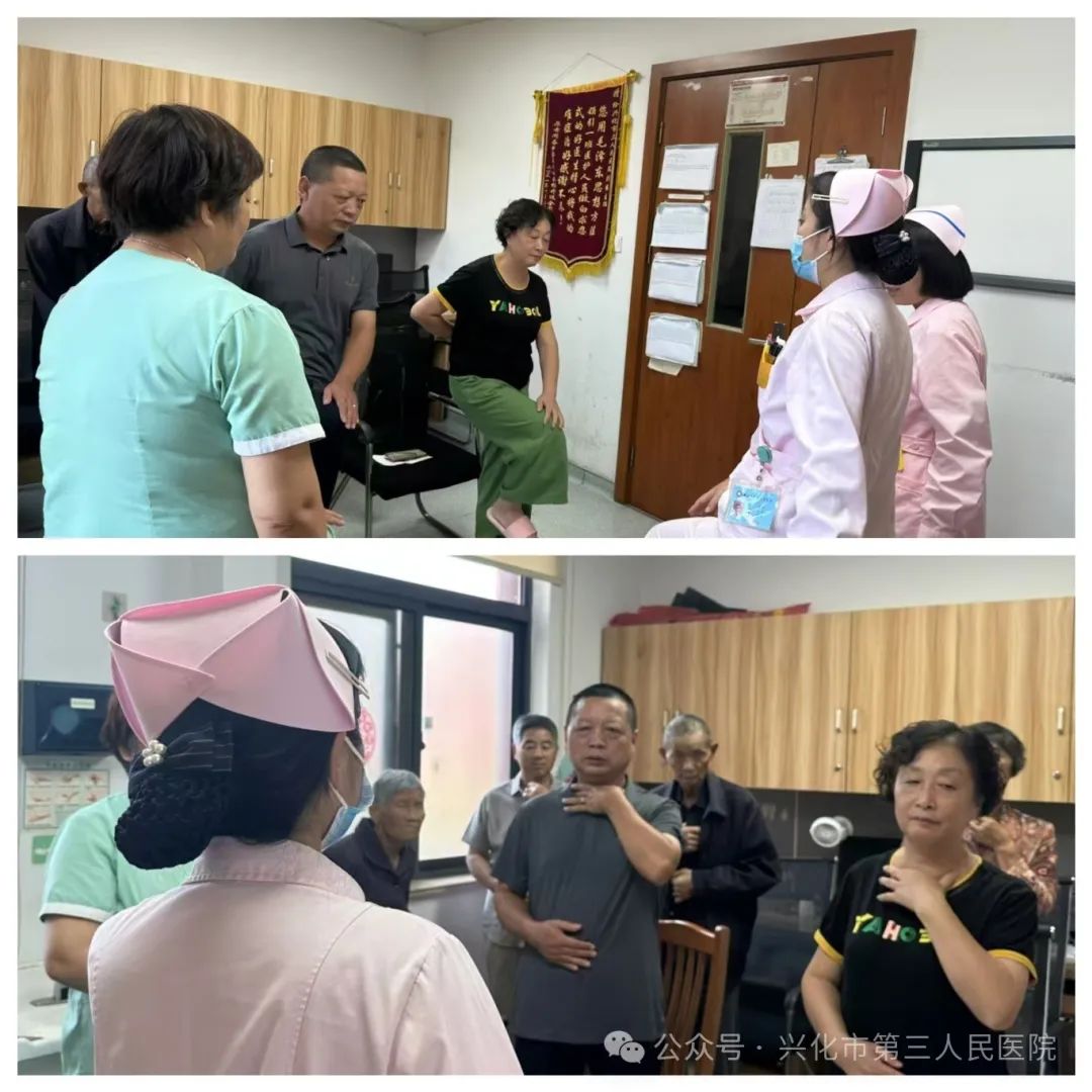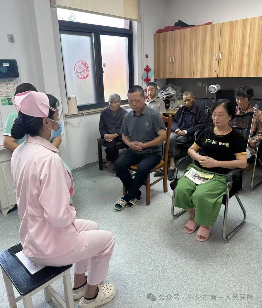 冥想环节,护士们引导大家如何关注自己身体的变化,学会如何让身心放松,克服疾病带来的心理压力和焦虑情绪。随后现场演示了能量调和操,通过轻柔按摩来疏通经络、促进气血运行,舒缓疲劳,调整脏腑功能,增强抗病能力,让身体得到充分的放松。