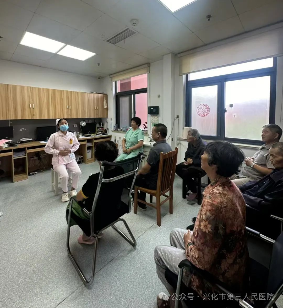 为进一步优化临床护理工作,紧密护患关系,促进病房管理更加规范科学,9月5日下午,兴化市第三人民医院五病区护理组在谢秀萍护士长的带领下开展了一场别具一格的公休座谈会,病区医护人员、工勤人员、部分患者及家属代表参加此次活动。